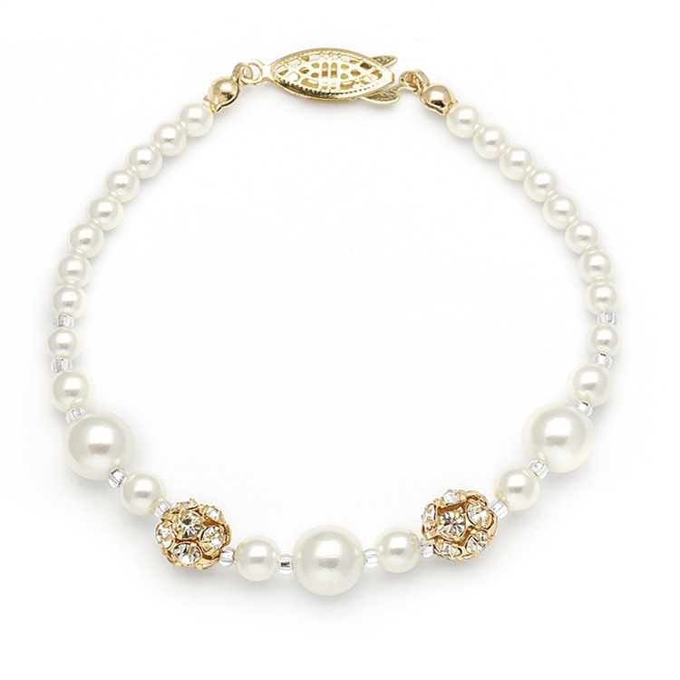 Wedding Bracelet with Pearls & Rhinestone Fireballs in Ivory.