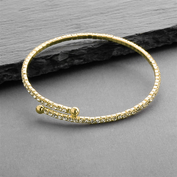 Single Row Rhinestone Coil Bracelet in 14K Gold.