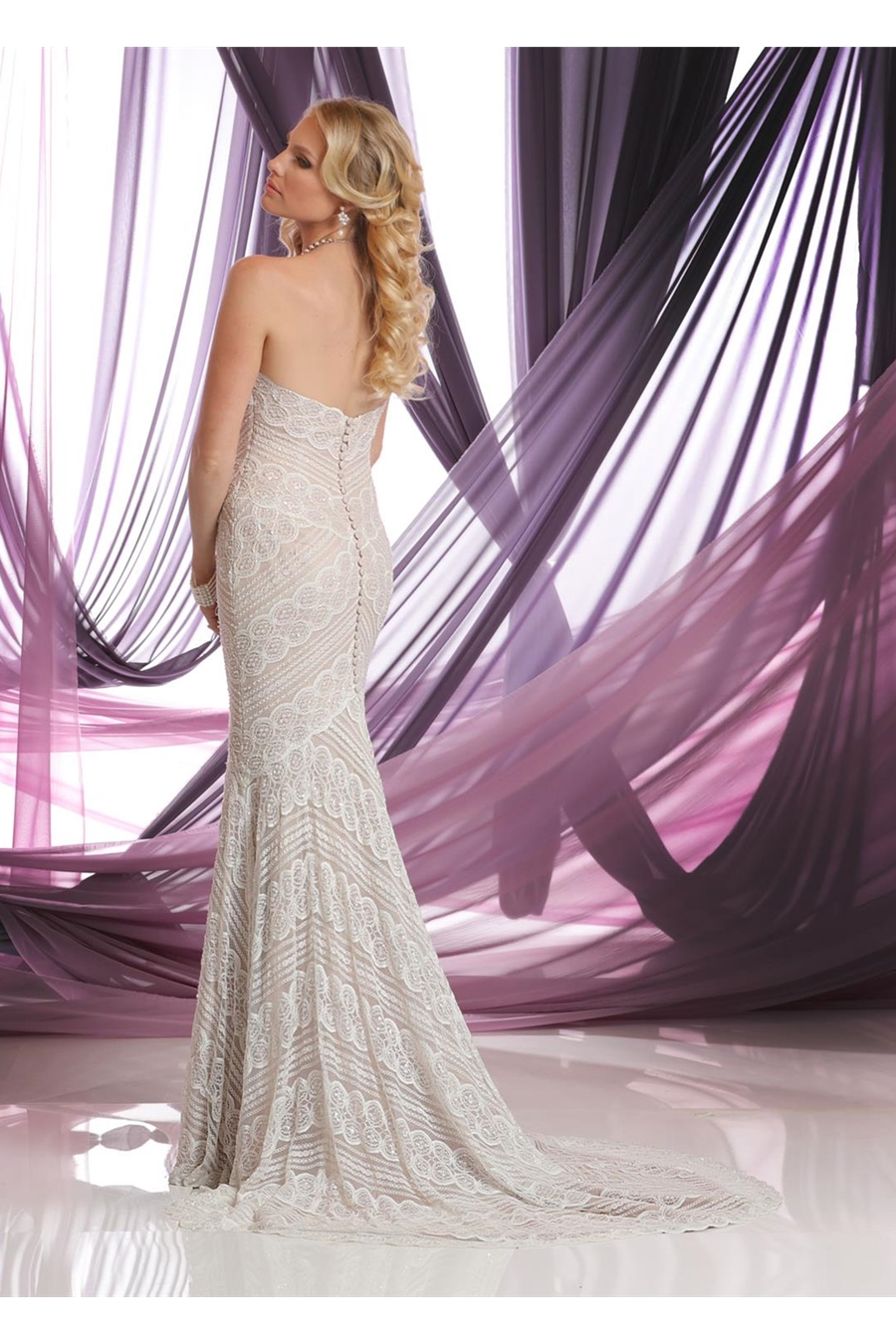 This bridal gown features Embroidered Cotton Lace/Beaded Embroidery Pattern/Sequined Tulle/English Net. Detachable Lining Included. Wedding dress is available to special order in Champagne/Nude/Ivory Silver, Ivory/Nude/Ivory Silver, White/Nude/White Silver, sizes 0-28.