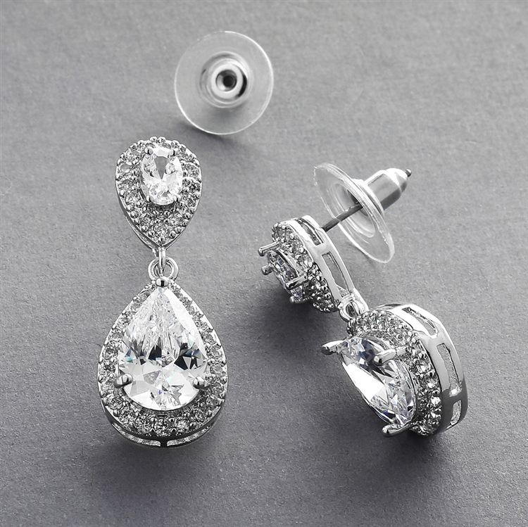 Lustrous Cubic Zirconia Teardrop Wedding Earrings. Available in Silver.