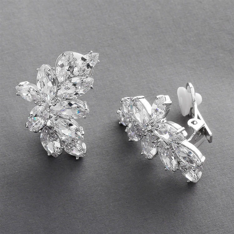 Cubic Zirconia Marquis Cluster Clip Earrings. Available in Silver.