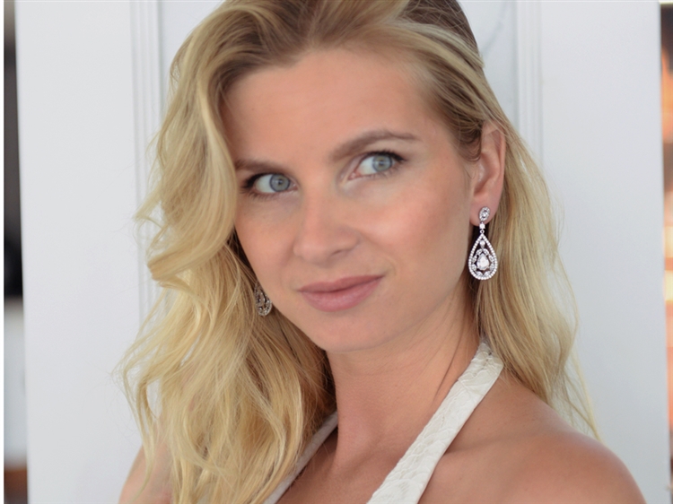 Silver Platinum plated 1 3/4″ h x 3/4″ w Cubic Zirconia earrings have a gorgeous mosaic of pears & marquise framed by micro pave CZ. Our delicate golden earrings add glamorous sparkle to weddings, proms, pageants, homecomings, graduations or bridesmaids.