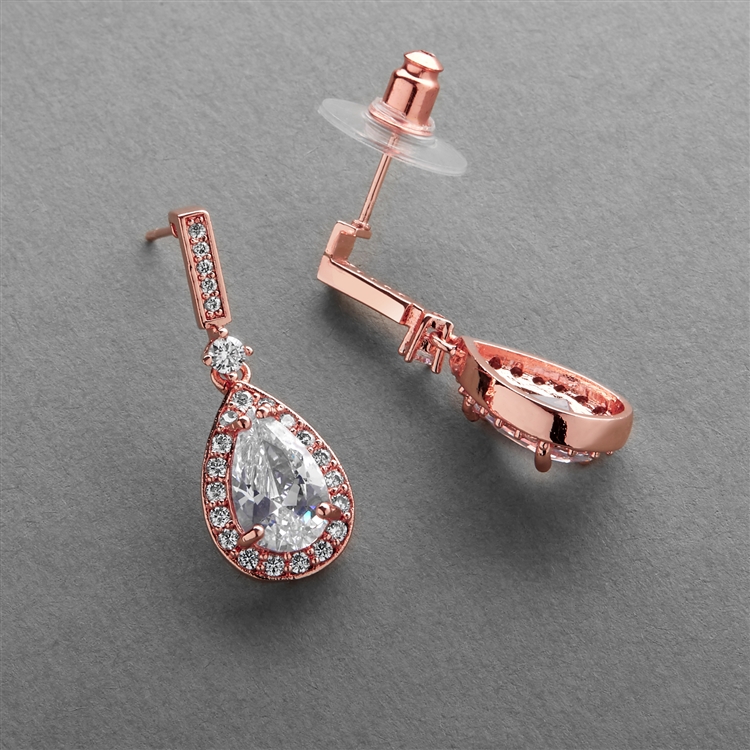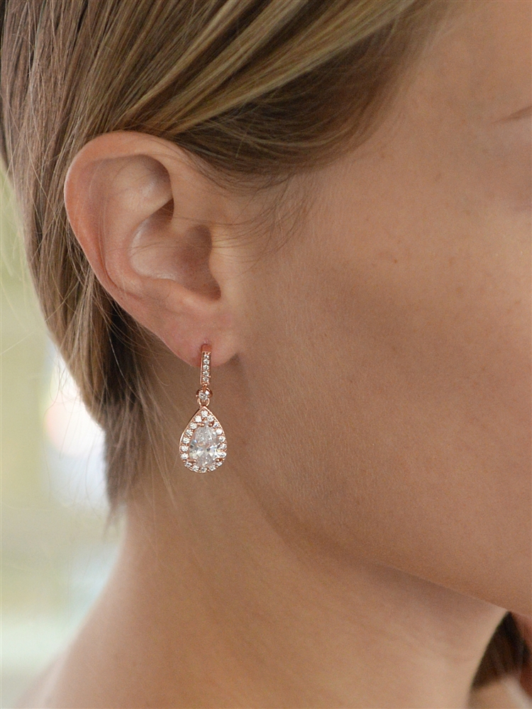 Rose Gold and Cubic Zirconia Bridal Earrings with Framed Pear Drops