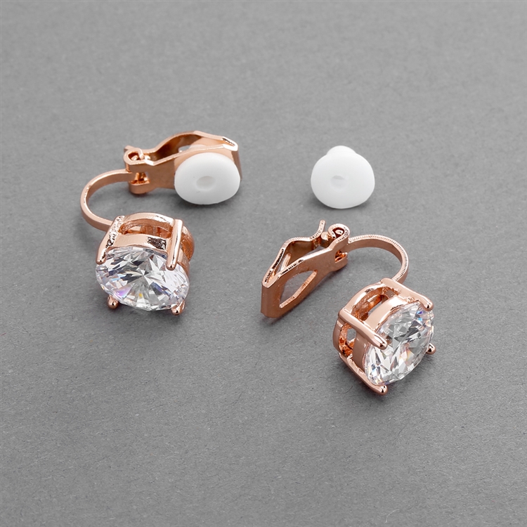 Platinum Clip-On Earrings with 3 Carat 9.5mm CZ Solitaire