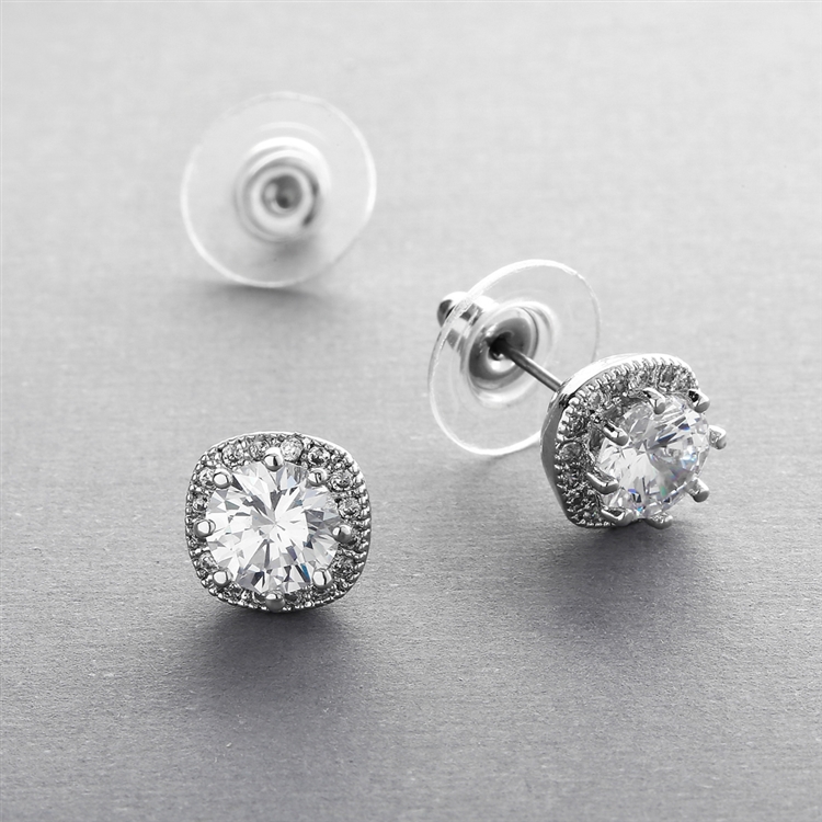 Cubic Zirconia Cushion Shape 10mm Halo Stud Earrings with Round Cut Solitaire