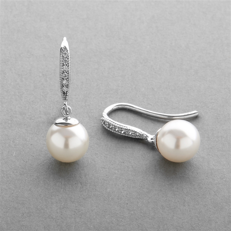 Vintage Micro Pave CZ French Wire Bridal Earrings with Ivory Pearl Drops