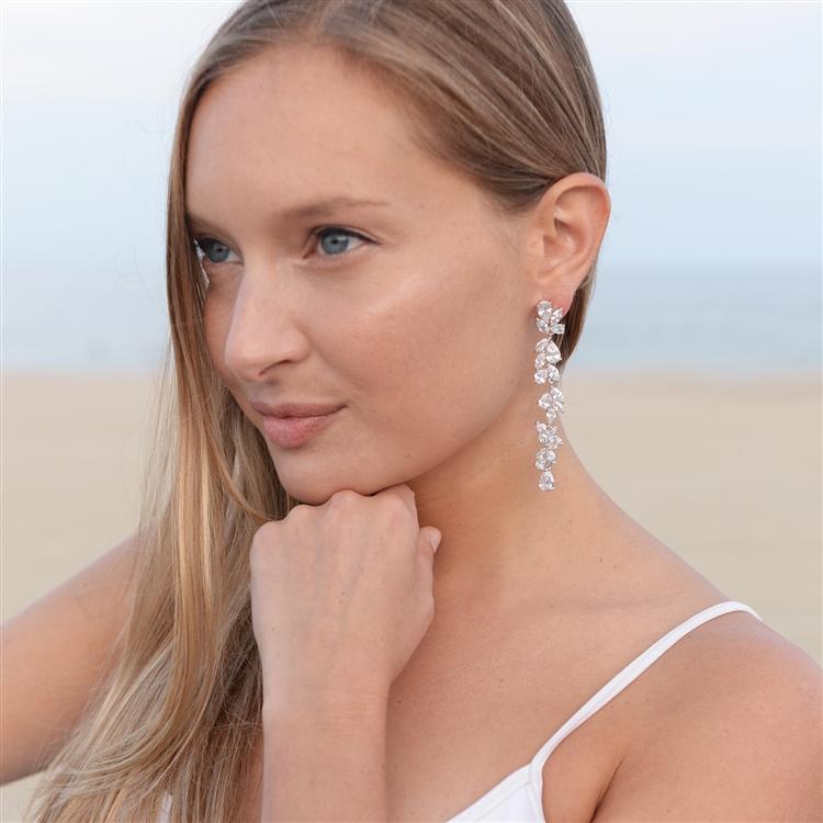 Cubic Zirconia Long Statement Wedding Dangle Earrings