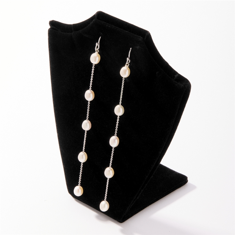 Genuine Freshwater Ivory Pearl Dangle Shoulder Duster Earrings on Slender Silver Chain