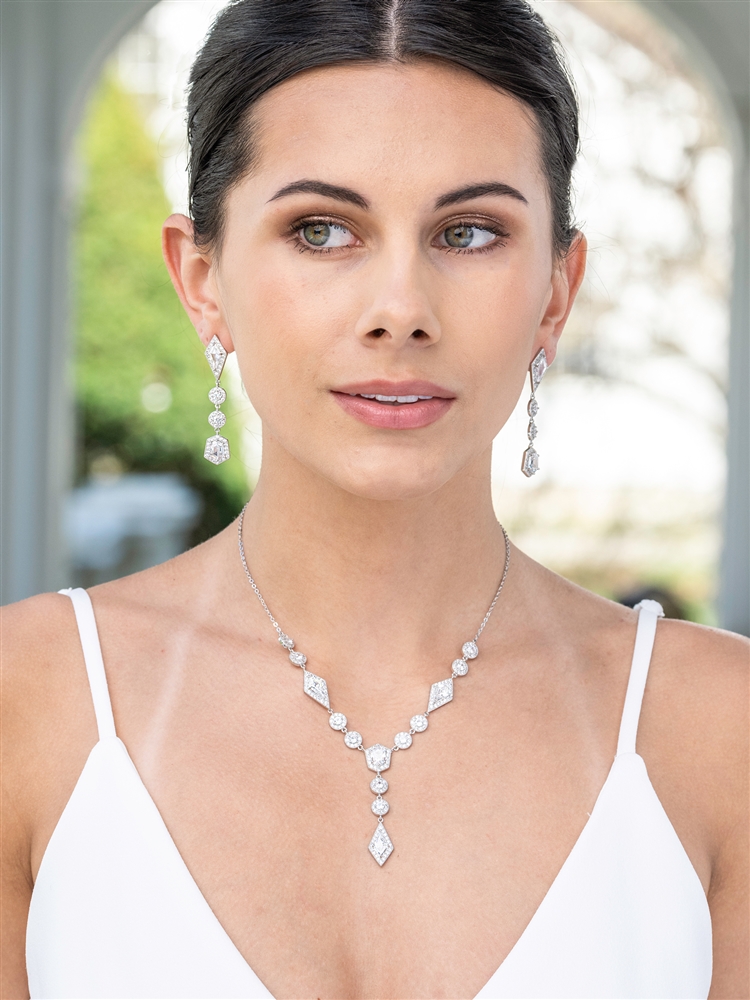 Empress & Noble Cut Cubic Zirconia Necklace & Earrings Set.