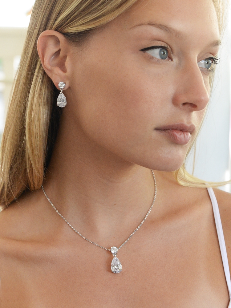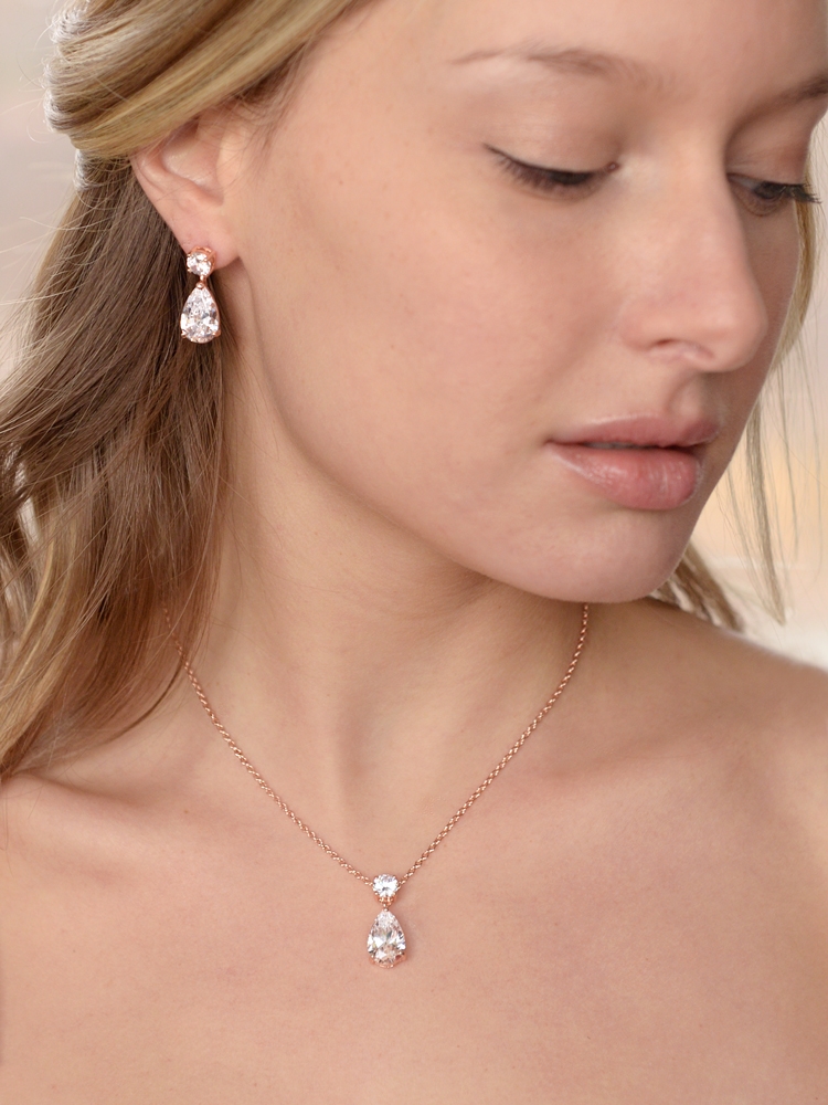 Rose Gold Cubic Zirconia Teardrop Necklace Set.