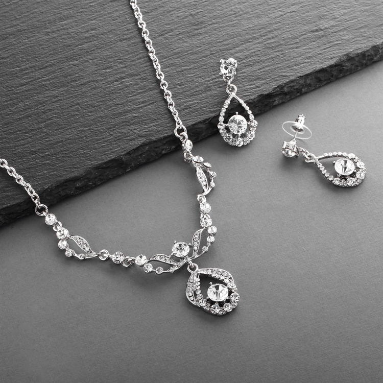 Vintage Crystal Necklace and Earrings Set in Antique Silver Plating.