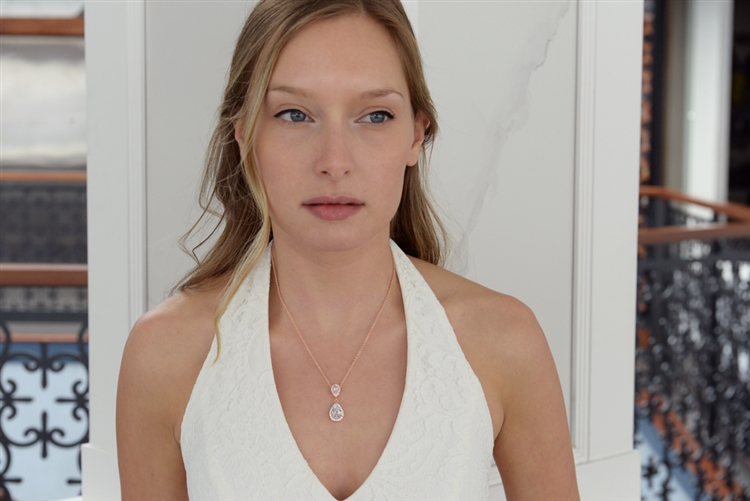 Lustrous Rose Gold Cubic Zirconia Teardrop Pendant.