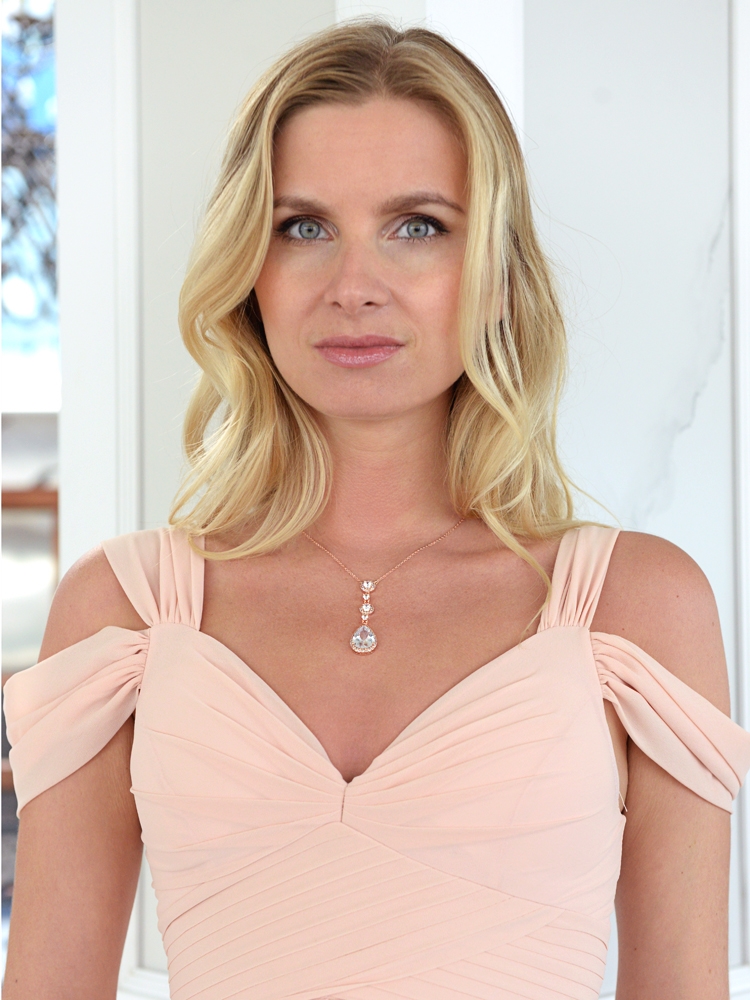 Rose Gold Bridal Necklace with Pear-shaped CZ Drop.