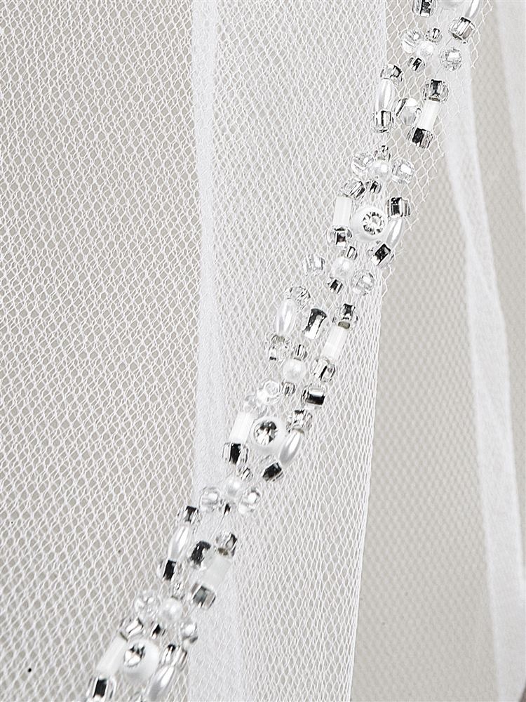 Rhinestone Edge Fingertip Wedding Veil with Pearls, Beads & Crystals – Ivory